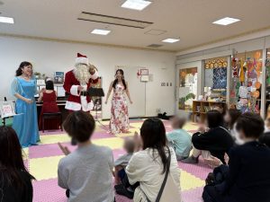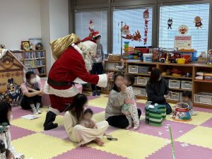 1回目は幼児が4人だけでしたが、コンコンクシャンのうたなど幼児向けの曲に嬉しそうにしたり、発泡スチロールペーパーの雪やサンタクロースの登場に夢中になって喜んでくれました。
